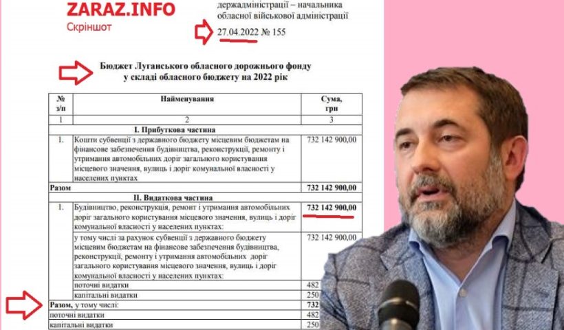 В кінці квітня 2022р Гайдай виділив 732 млн грн на дороги Луганщини, а розпорядженнь про евакуацію матеріальних ресурсів не видавав