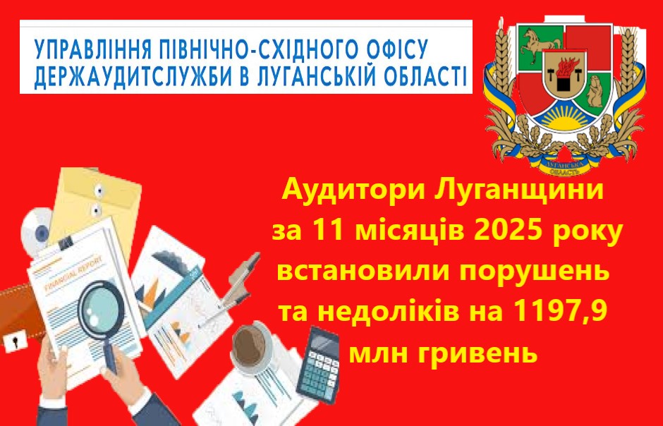 Аудитори Луганщини за 11 місяців 2025 року встановили порушень та недоліків на майже 1,2 млрд гривень