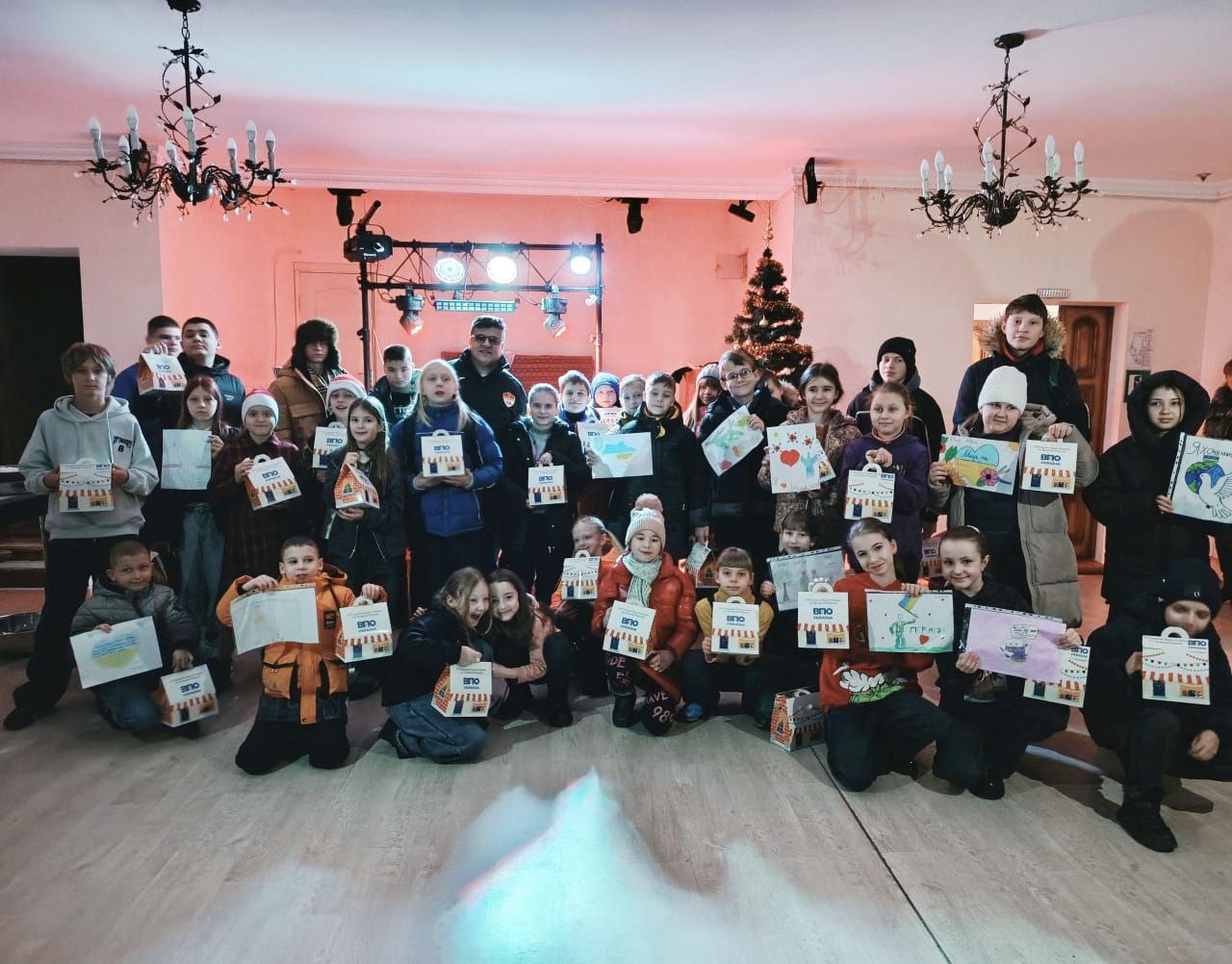 Євген Валуйський не лише подарував дітям яскраве шоу, а й особисто передав теплі худі для громад Тернопільщини, Вінниччини та Хмельниччини, а також солодкі подарунки.