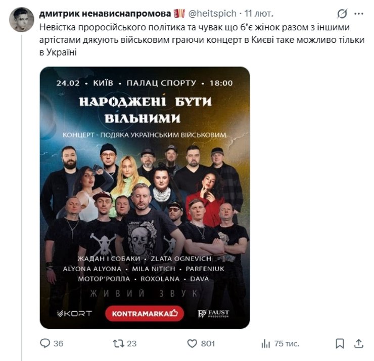 Концерт мав буди подяккою військовим. Але ідея провести концерт 24 лютого викликала хвилю обурення.